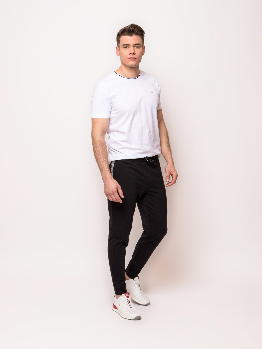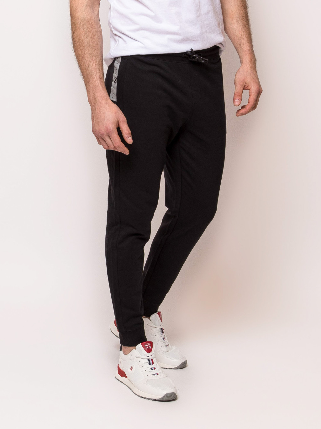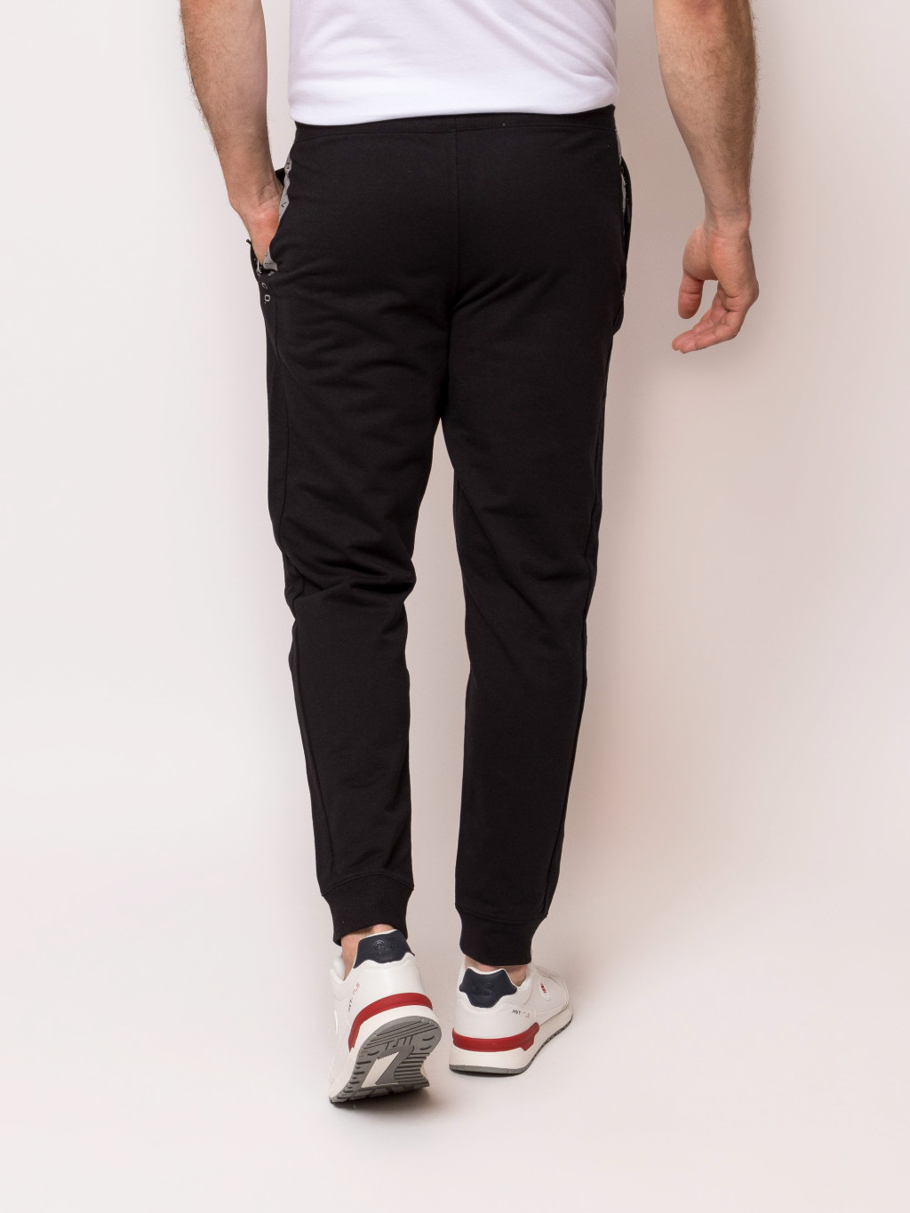 Ez a férfi melegítőnadrág húzózsinórral állítható, elasztikus derékrészével, praktikus, cipzáros zsebeivel és jól szellőző anyagával maximális kényelemről gondoskodik akár aktív mozgás közben is. Lefelé szűkülő szárával, passzés aljával, klasszikus színeivel és trendi márkajelzéseivel sportszetted nélkülözhetetlen kiegészítője lesz. Viseld hozzá TANUS cipzaros pulóverünket az új kollekciónkból! Anyaga: 80% pamut, 20% poliészter, french terry. A modell 188 cm magas és M-es méretet visel.