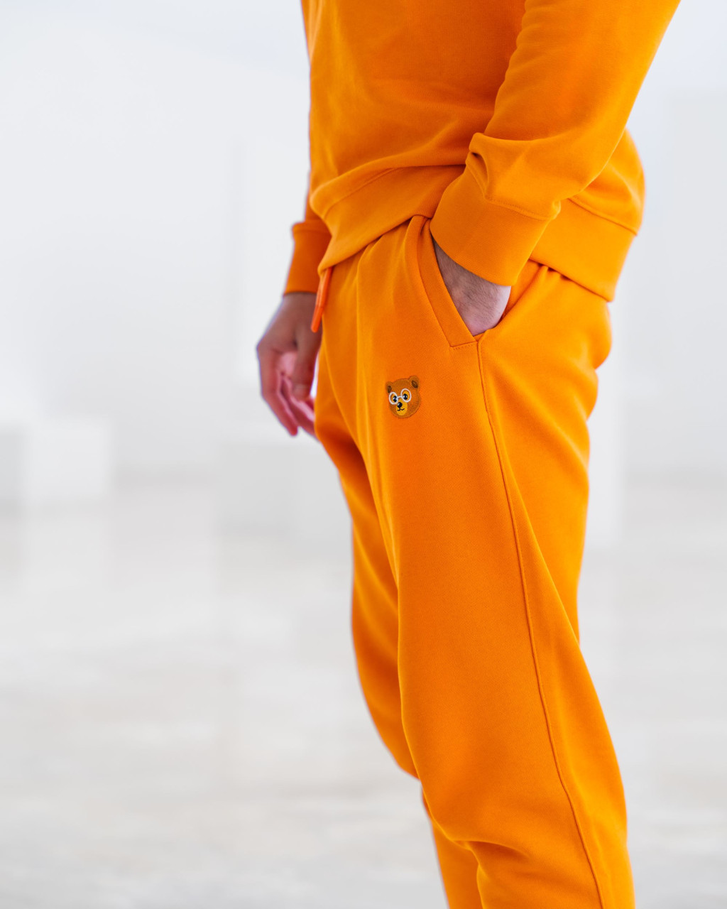Narancssárga tréning alsó, bordás derékpánttal és kerek húzózsinórral.